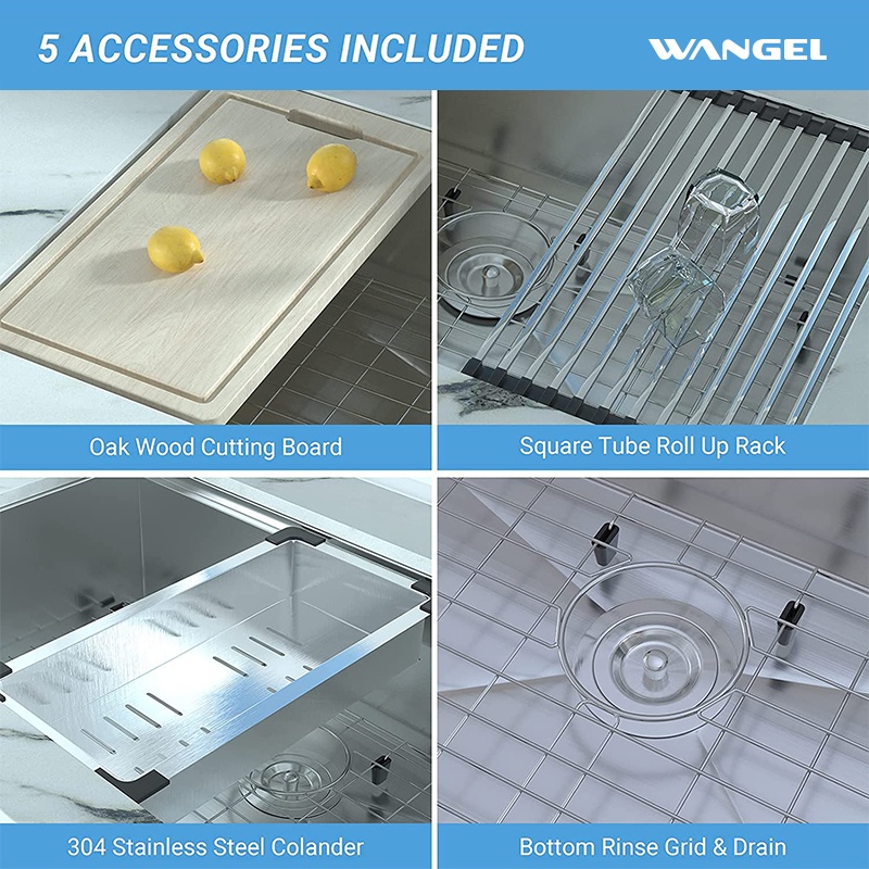 Wangel Undermount Kitchen Sink Single Bowl Kitchen Sink Undermount Stainless Steel Handmade Bar Sink with Basket Strainer(Brushed)
